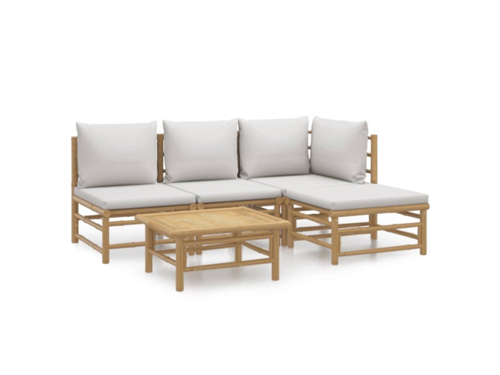 vidaXL 5-dielna záhradná sedacia súprava bledosivé vankúše bambus