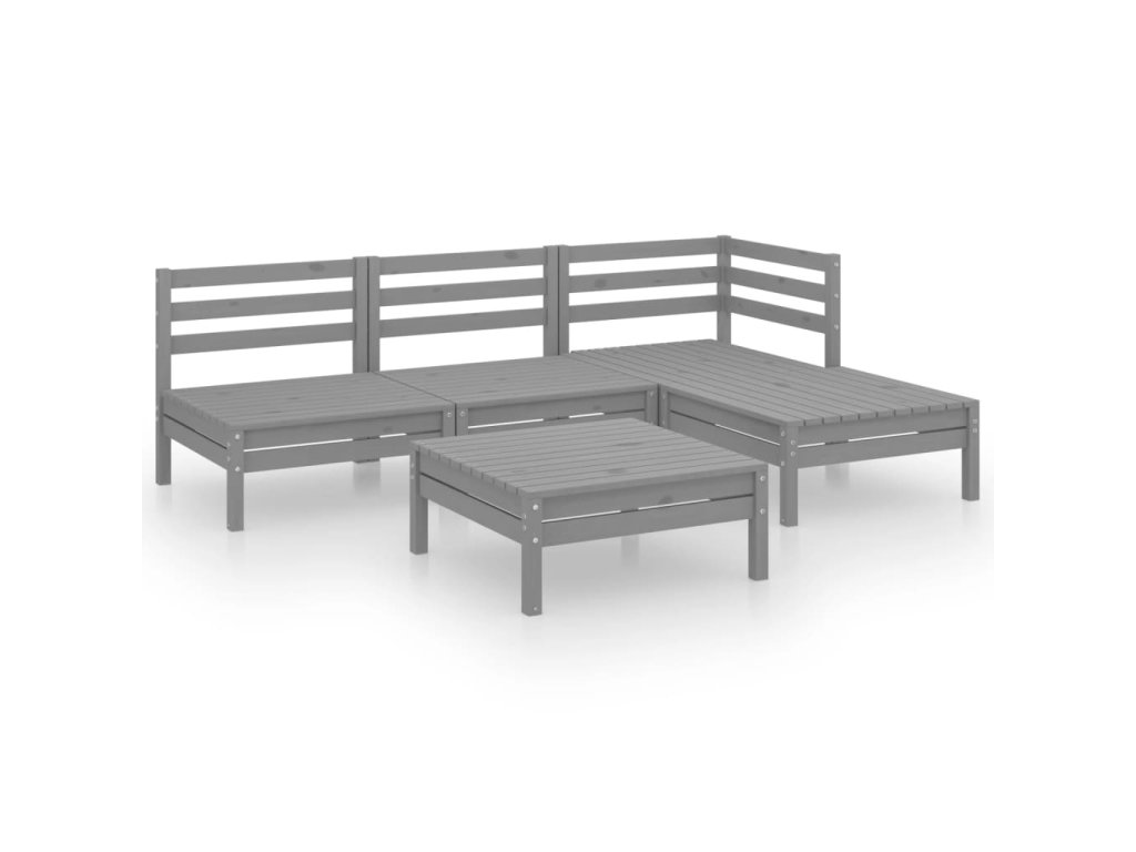vidaXL 5-dielna záhradná sedacia súprava borovicový masív sivá