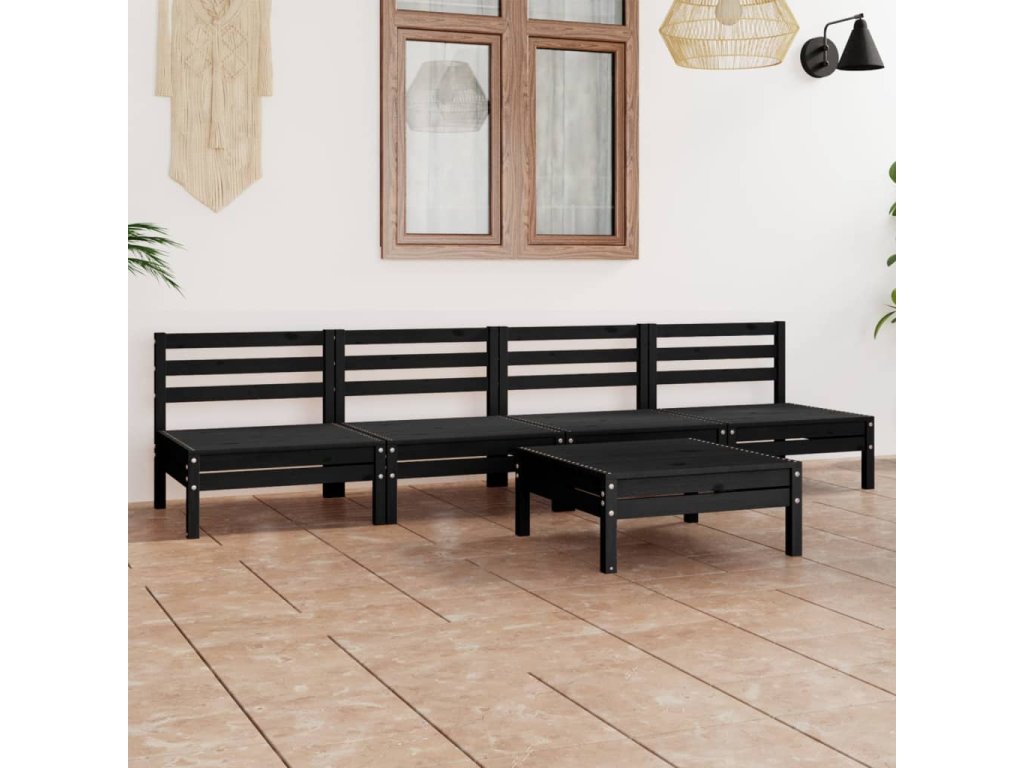 vidaXL 5-dielna záhradná sedacia súprava čierna masívna borovica