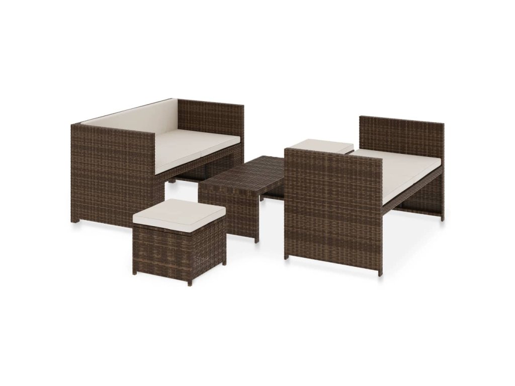 vidaXL 5-dielna záhradná sedacia súprava hnedá polyratanová