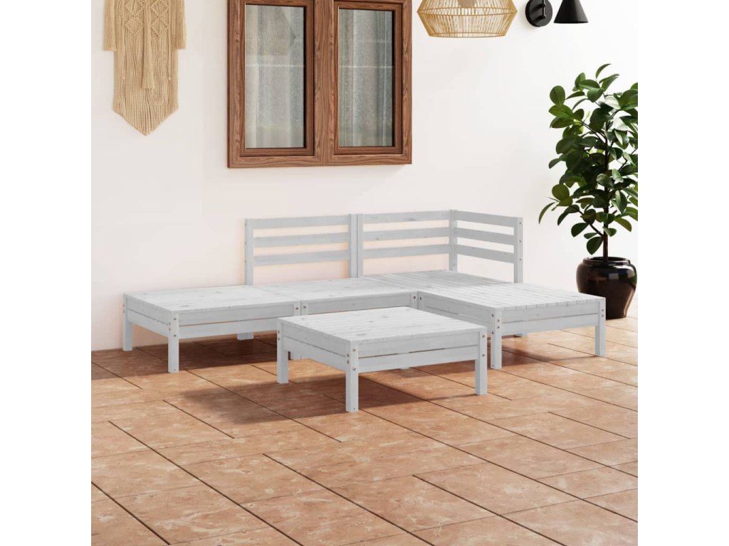 vidaXL 5-dielna záhradná sedacia súprava masívna borovica biela