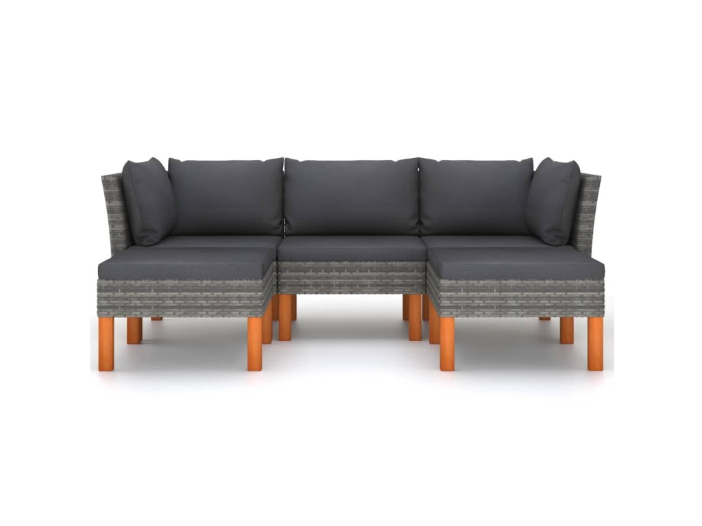 vidaXL 5-dielna záhradná sedacia súprava s podložkami polyratan sivá