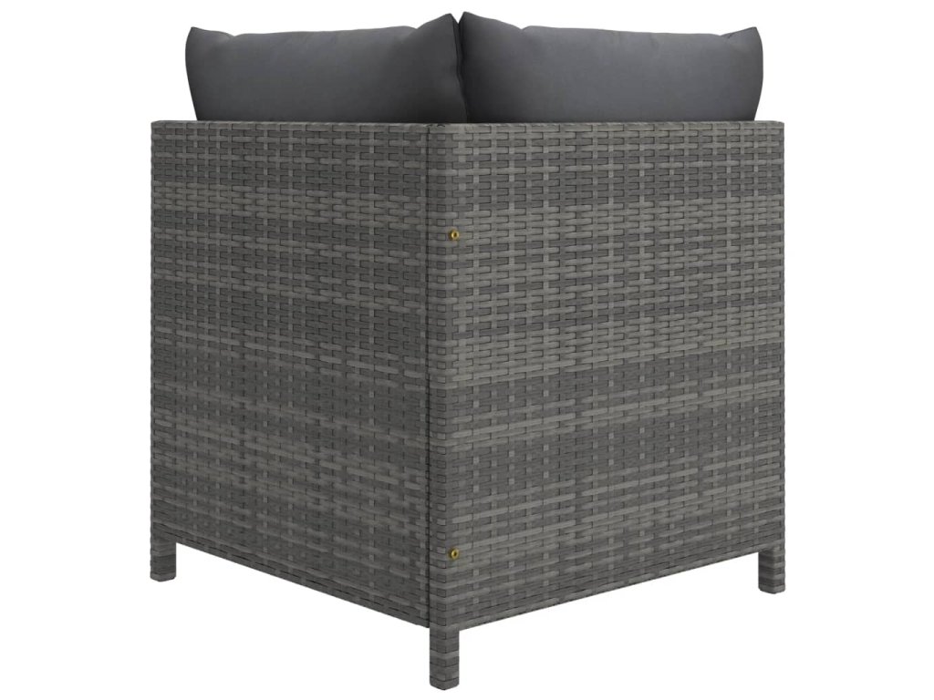 Pohodlná záhradná súprava pozostáva z oceľového rámu s práškovou povrchovou úpravou, ktorý je pokrytý PE ratanom, vďaka čomu je pevná a dá sa ľahko očistiť. Podložky s hustou výplňou vám poskytnú maximálne pohodlie pri sedení. Poťahy podložiek so zipsami sa dajú zvliecť a oprať. Podnožku môžete využívať aj ako praktický konferenčný stolík, na ktorý si odložíte rôzne predmety. Vonkajšia sedacia súprava má ľahkú konštrukciu, a tak sa dá jednoducho premiestňovať. Vďaka modulárnemu dizajnu si môžete súpravu ľubovoľne rozložiť do rôznych tvarov.