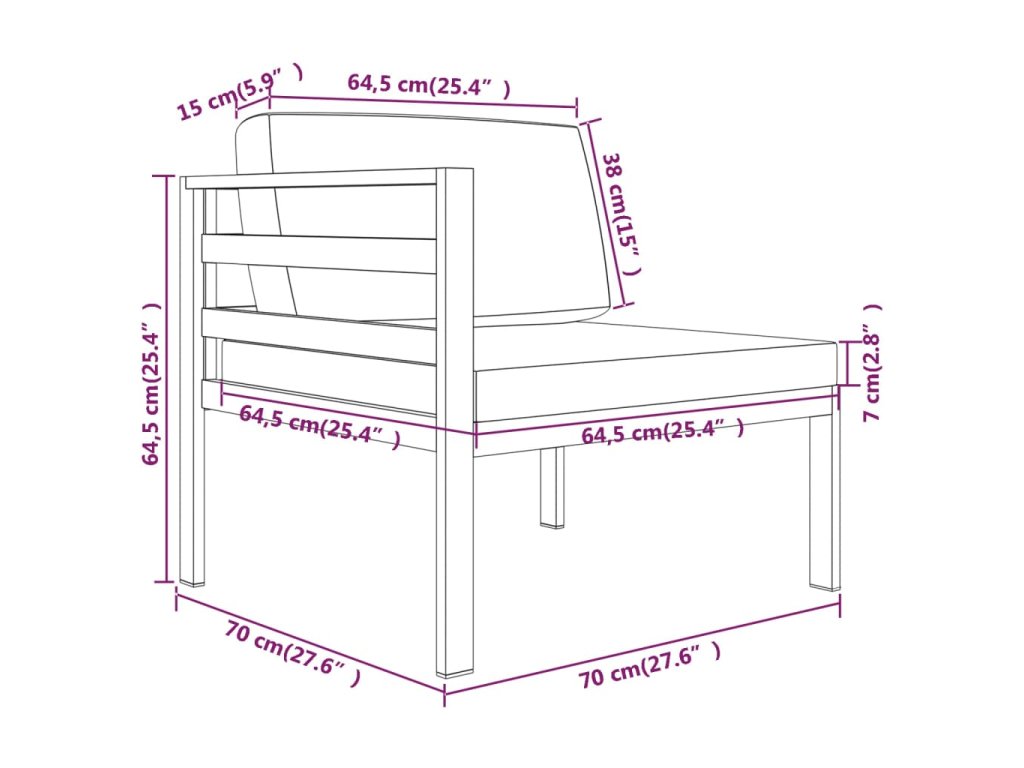 - Rozmery strednej pohovky: 64,5 x 70 x 64,5 cm (Š x H x V)