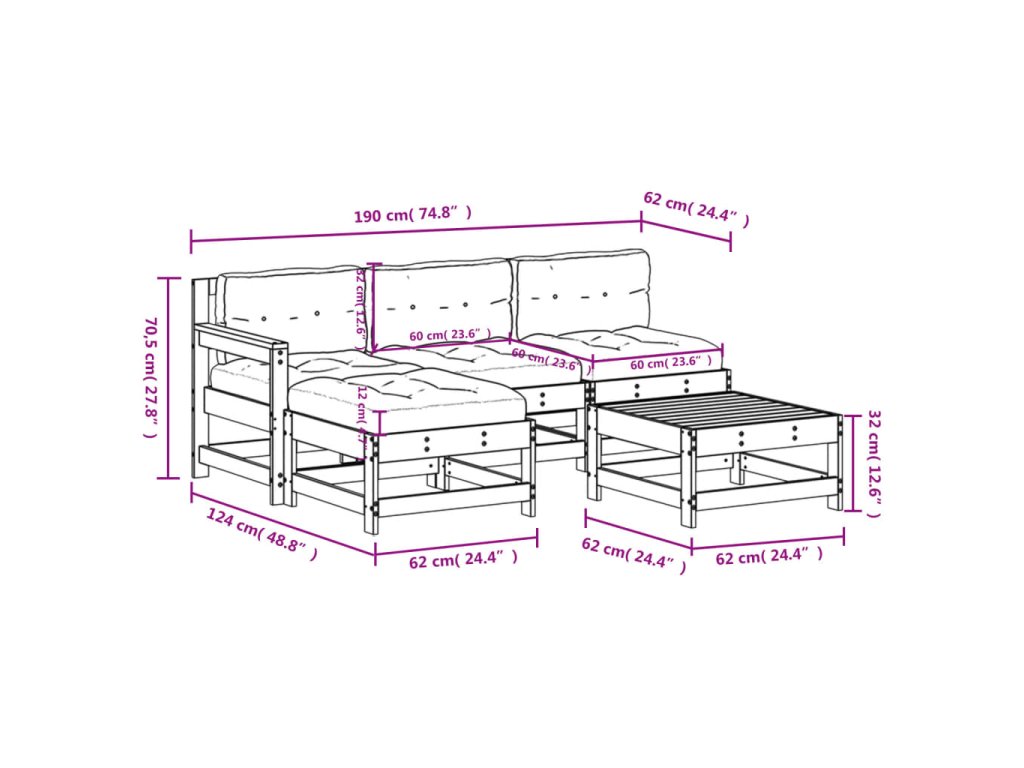- Rozmery stredovej pohovky: 62 x 62 x 70,5 cm (D x Š x V)
