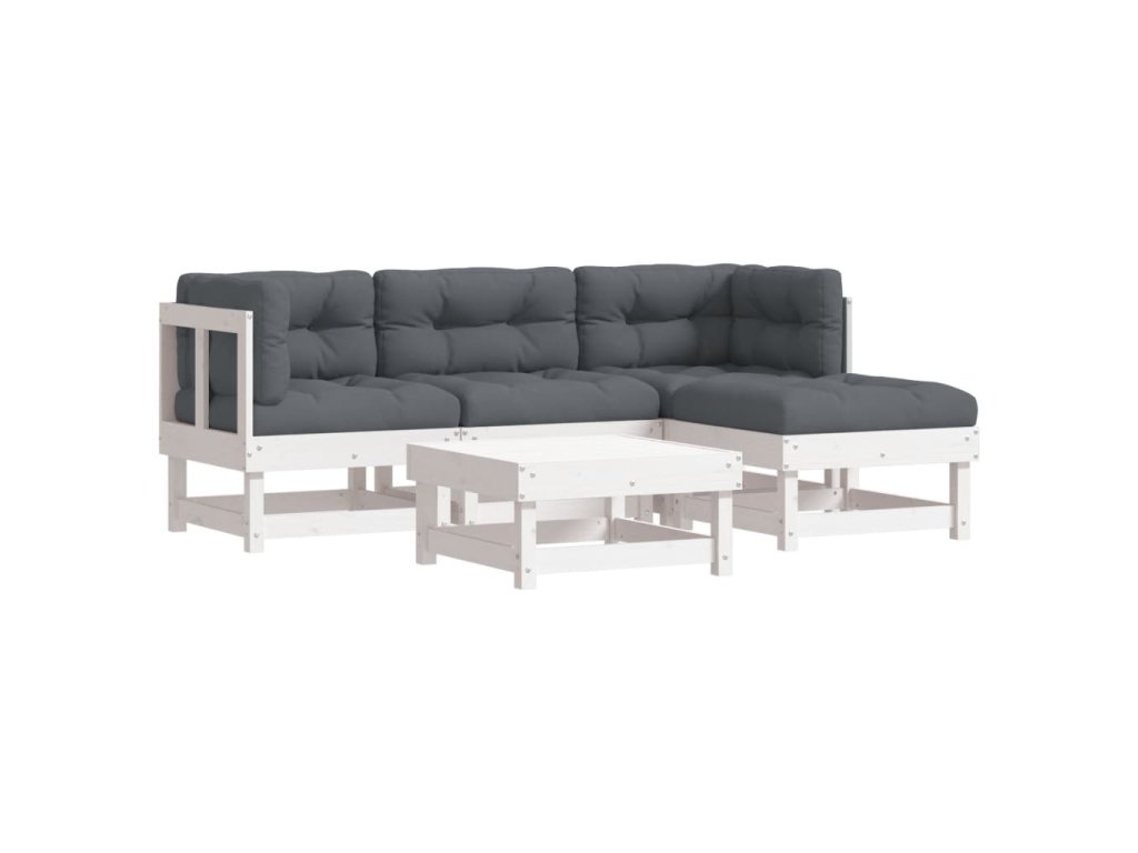 vidaXL 5-dielna záhradná sedacia súprava s vankúšmi biela teak