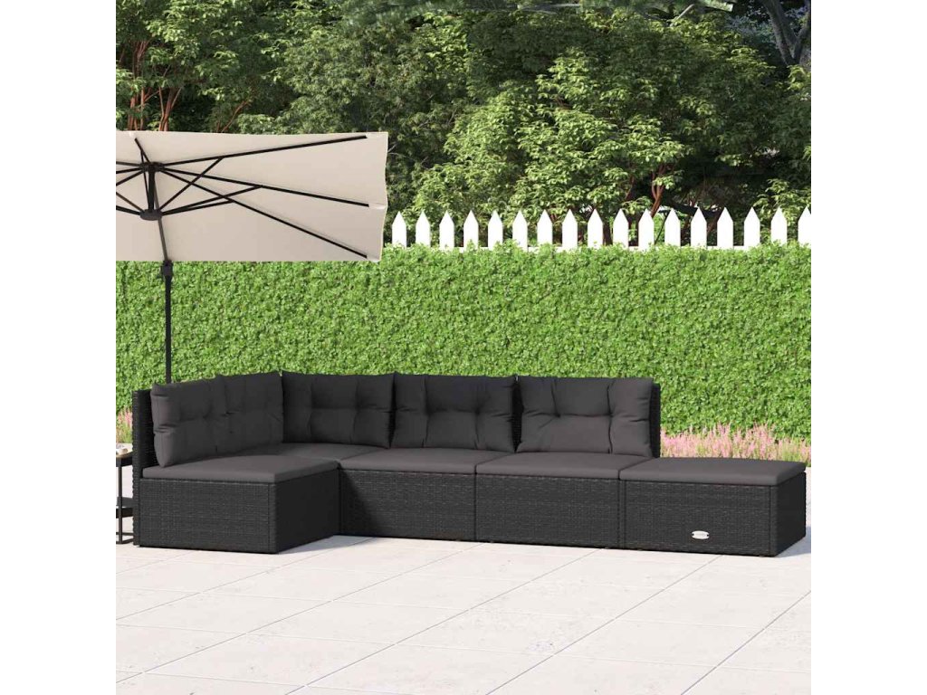 vidaXL 5-dielna záhradná sedacia súprava s vankúšmi čierna polyratan