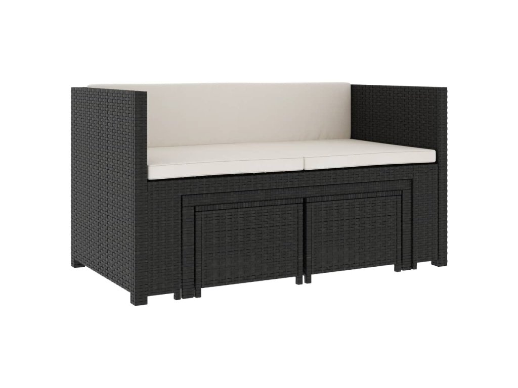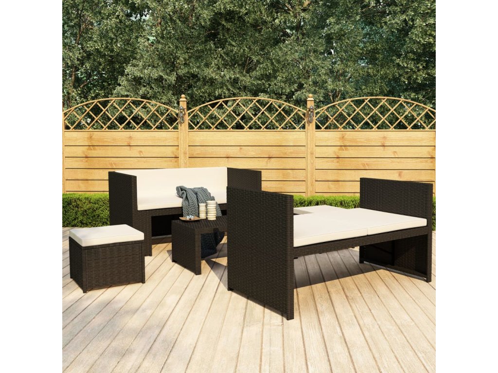 - Farba: Čierny polyratan a krémovo biele podložky