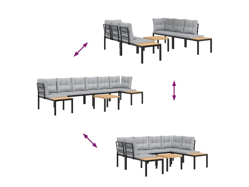 - Modulárny dizajn: Táto súprava vonkajšieho nábytku má modulárny dizajn, vďaka čomu je úplne flexibilná a ľahko sa premiestňuje, takže si svoj vonkajší nábytok budete môcť usporiadať podľa potreby.