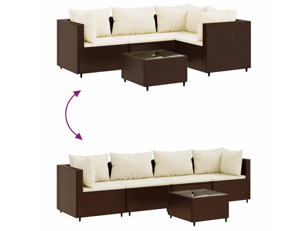 vidaXL 5-dielna záhradná sedacia súprava s vankúšmi hnedá polyratan