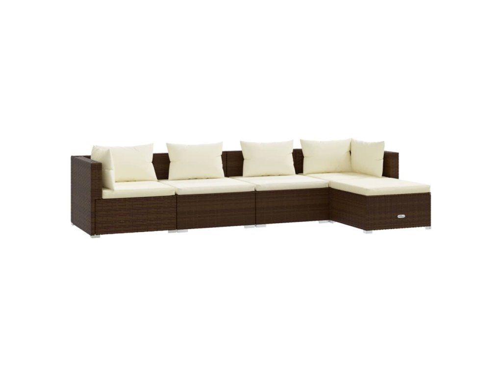 vidaXL 5-dielna záhradná sedacia súprava s vankúšmi polyratan hnedá