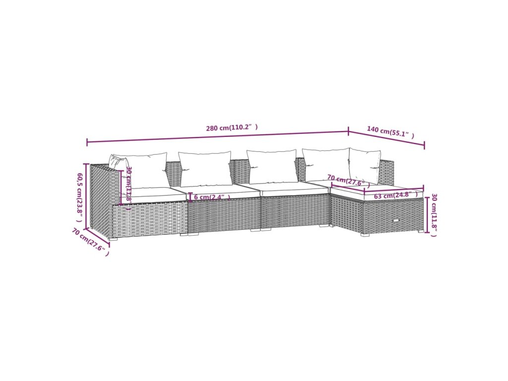 - Rozmery strednej/rohovej pohovky (každá): 70 x 70 x 60,5 cm (D x Š x V)