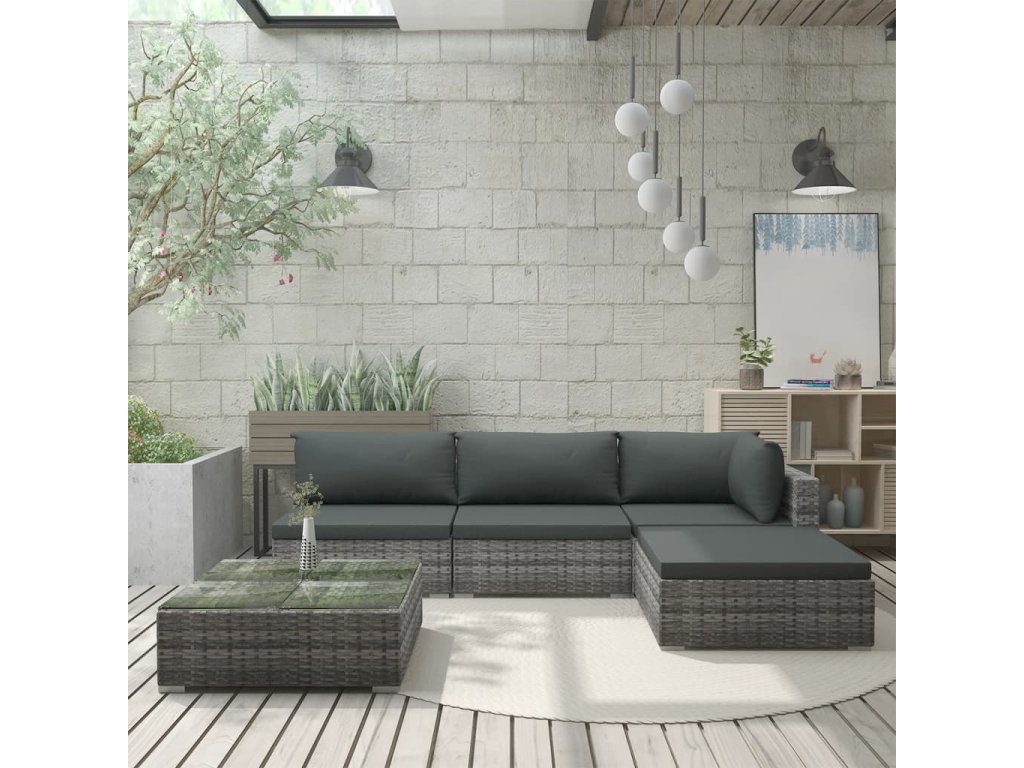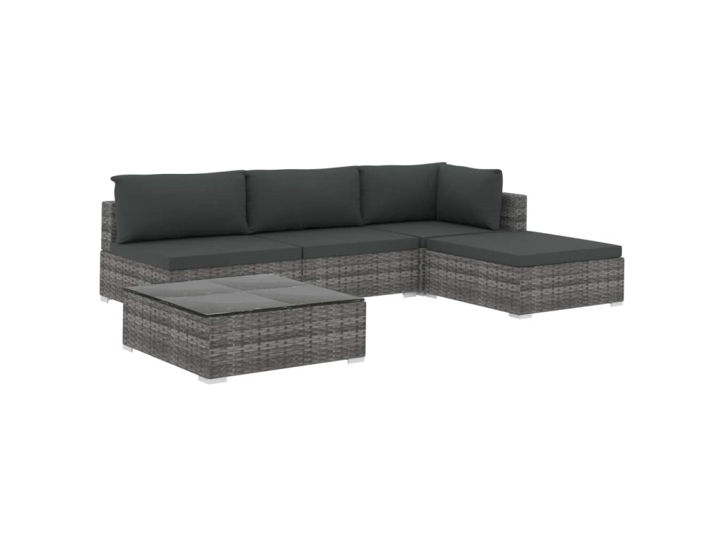 vidaXL 5-dielna záhradná sedacia súprava s vankúšmi sivá polyratanová