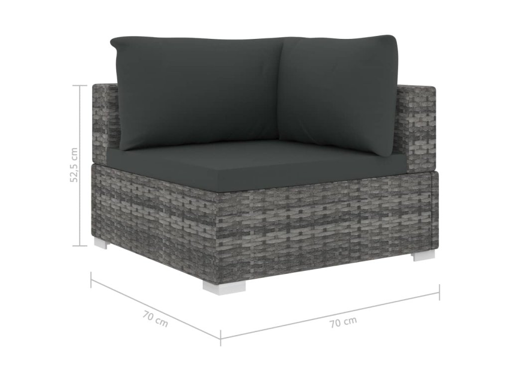 - Rozmery rohovej pohovky: 70 x 70 x 52,5 cm (Š x H x V)