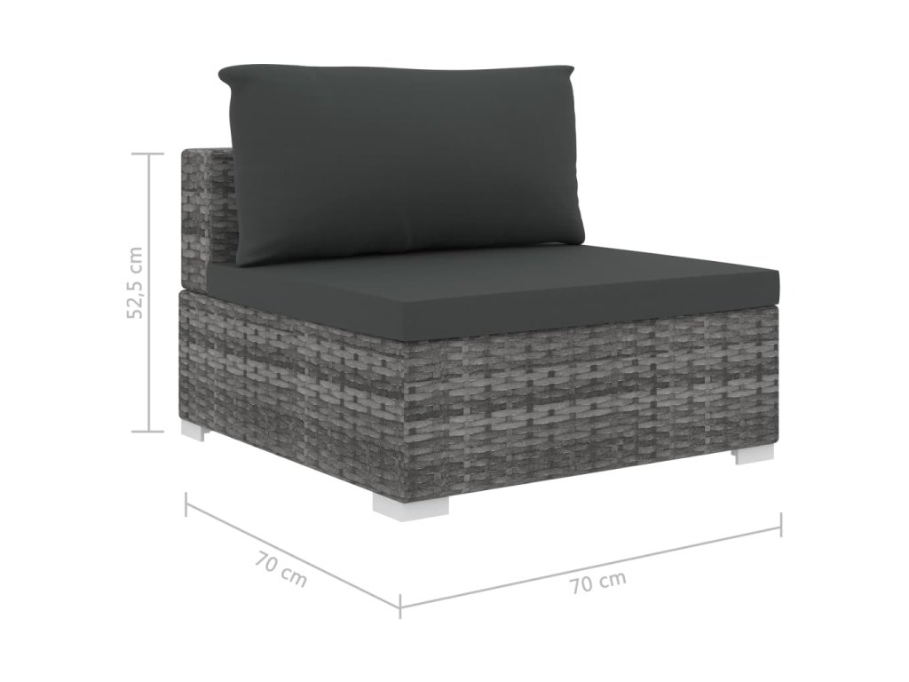 - Rozmery stredovej pohovky: 70 x 70 x 52,5 cm (Š x H x V)