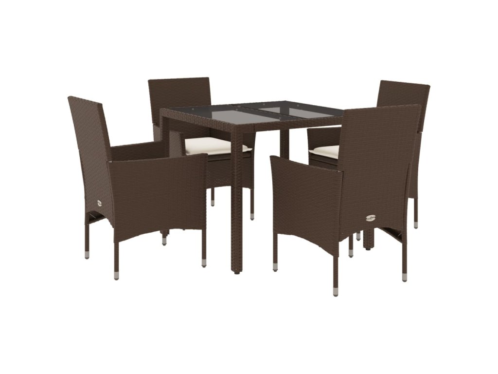vidaXL 5-dielna záhradná súprava a vankúše hnedá polyratan a sklo