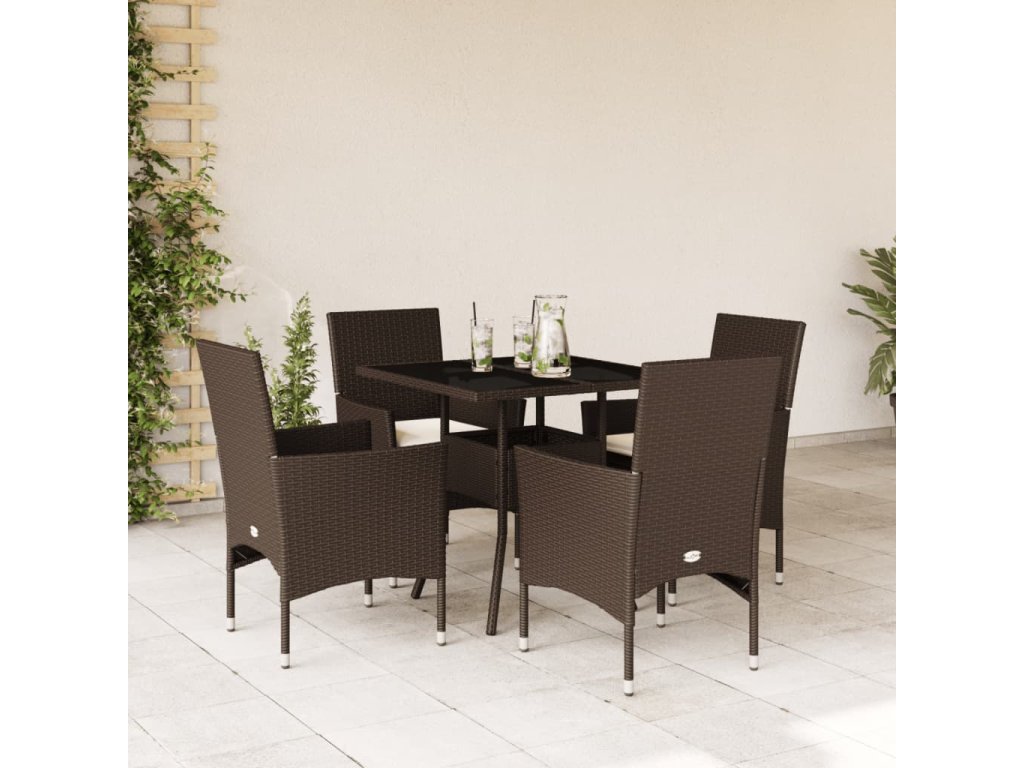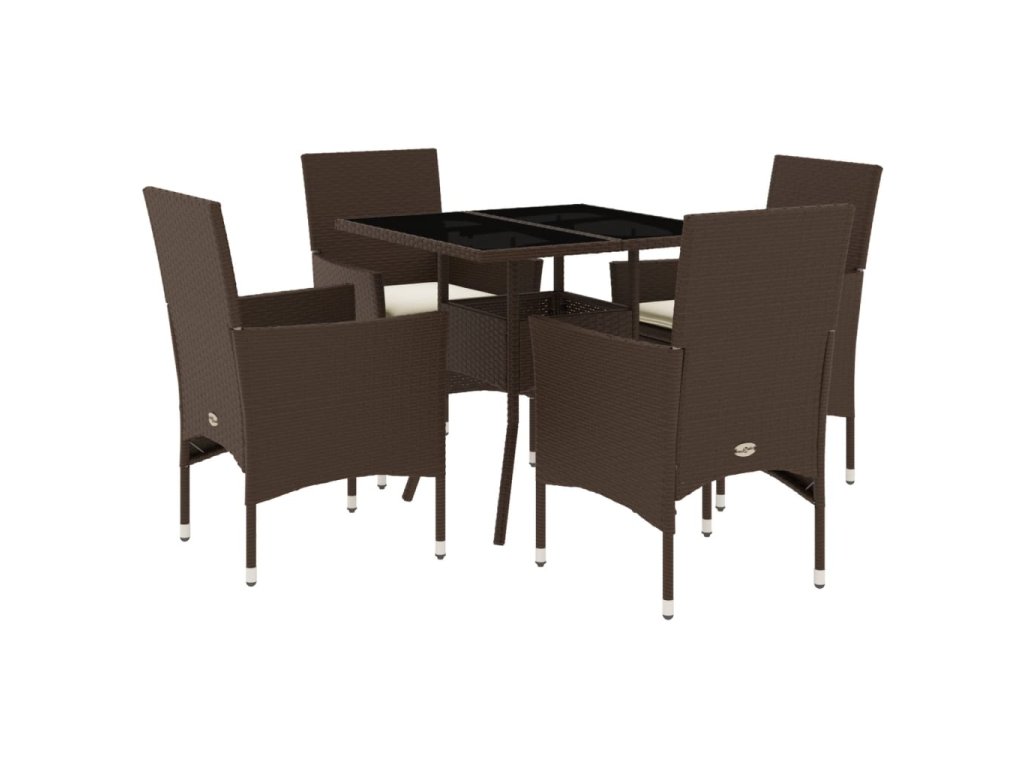 vidaXL 5-dielna záhradná súprava a vankúše hnedá polyratan a sklo