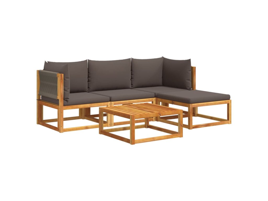 vidaXL 5-dielna záhradná súprava pohoviek s vankúšmi, akácia a lano