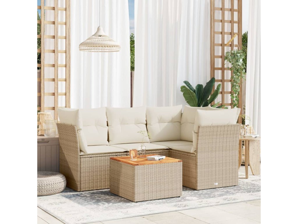 vidaXL 5-dielna záhradná súprava pohoviek s vankúšmi béžová polyratan