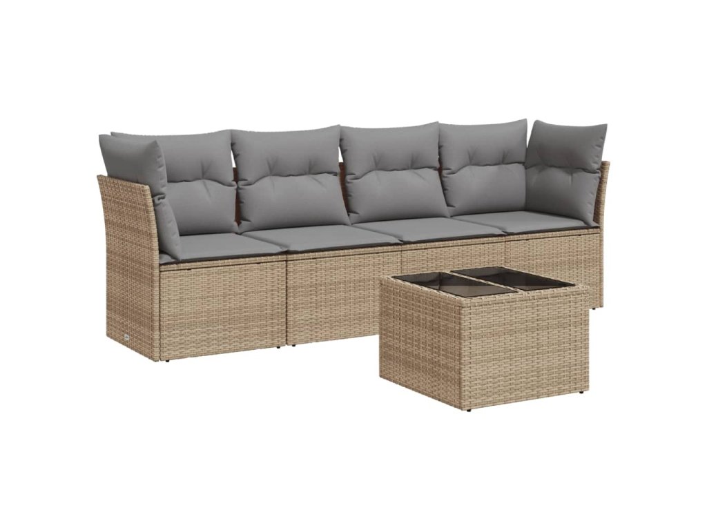 vidaXL 5-dielna záhradná súprava pohoviek s vankúšmi béžová polyratan