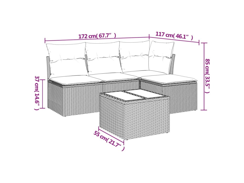 Táto záhradná sedacia súprava je dokonalým doplnkom na váš dvor, terasu alebo verandu, a poskytuje pohodlný a príjemný priestor na rozhovory s rodinou a priateľmi alebo jednoducho na relaxáciu a užívanie si pobytu vonku.