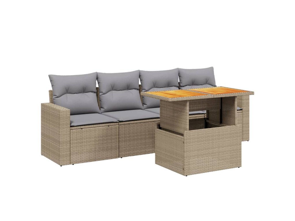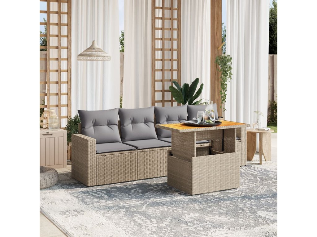 vidaXL 5-dielna záhradná súprava pohoviek s vankúšmi béžová polyratan