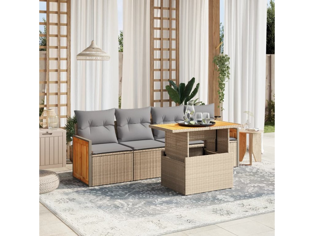 vidaXL 5-dielna záhradná súprava pohoviek s vankúšmi béžová polyratan