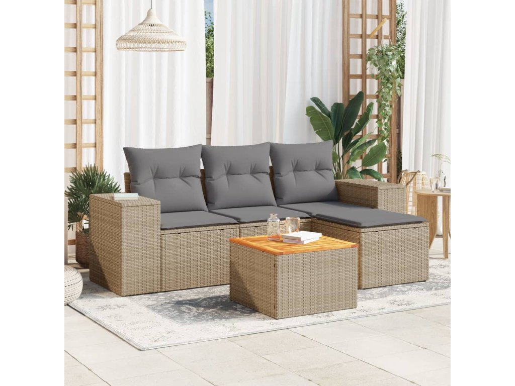 vidaXL 5-dielna záhradná súprava pohoviek s vankúšmi béžová polyratan
