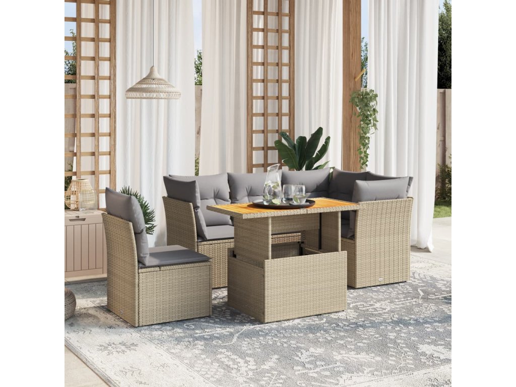 vidaXL 5-dielna záhradná súprava pohoviek s vankúšmi béžová polyratan