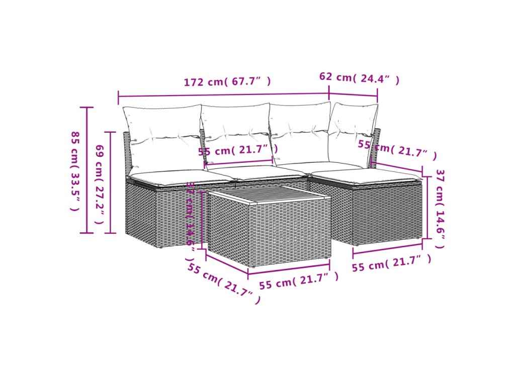 Táto záhradná sedacia súprava je dokonalým doplnkom na váš dvor, terasu alebo verandu, a poskytuje pohodlný a príjemný priestor na rozhovory s rodinou a priateľmi alebo jednoducho na relaxáciu a užívanie si pobytu vonku.