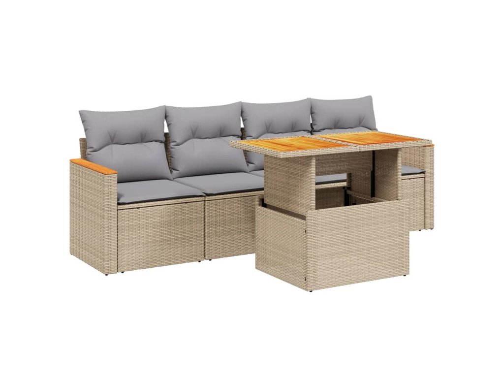 vidaXL 5-dielna záhradná súprava pohoviek s vankúšmi béžová polyratan