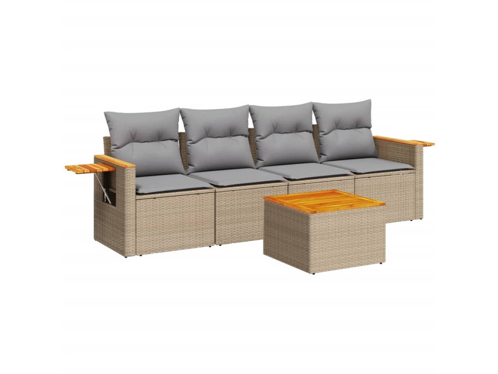 vidaXL 5-dielna záhradná súprava pohoviek s vankúšmi béžová polyratan