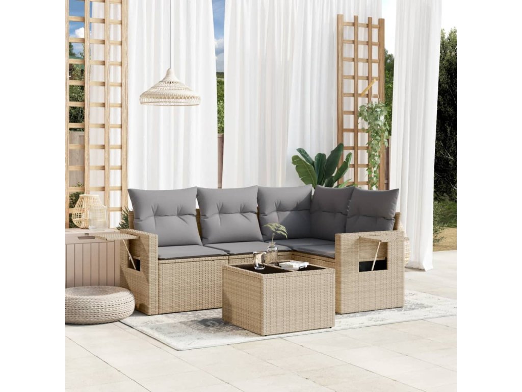 vidaXL 5-dielna záhradná súprava pohoviek s vankúšmi béžová polyratan