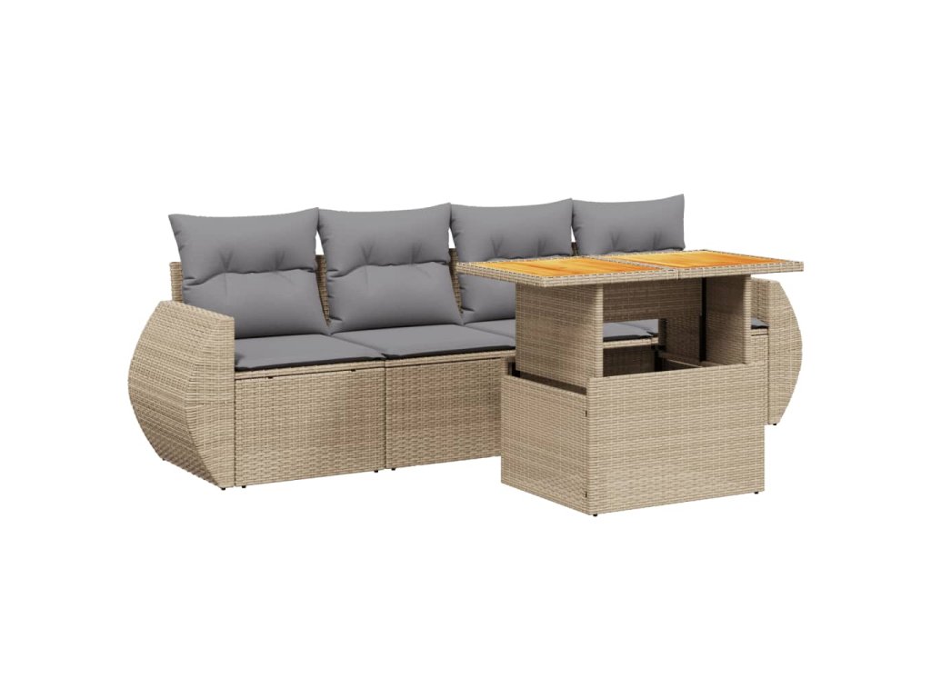 vidaXL 5-dielna záhradná súprava pohoviek s vankúšmi béžová polyratan