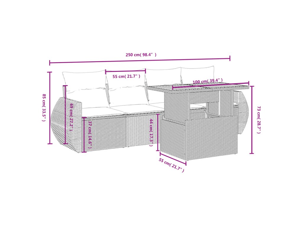 Táto záhradná sedacia súprava je dokonalým doplnkom na váš dvor, terasu alebo verandu, a poskytuje pohodlný a príjemný priestor na rozhovory s rodinou a priateľmi alebo jednoducho na relaxáciu a užívanie si pobytu vonku.