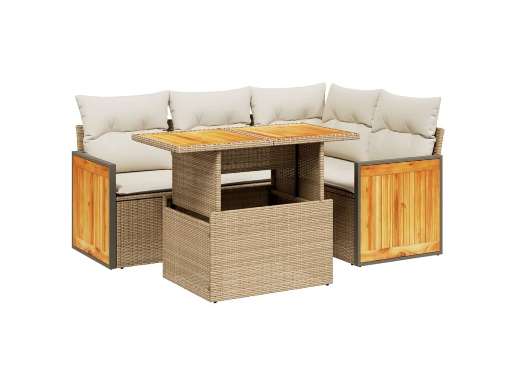 vidaXL 5-dielna záhradná súprava pohoviek s vankúšmi béžová polyratan