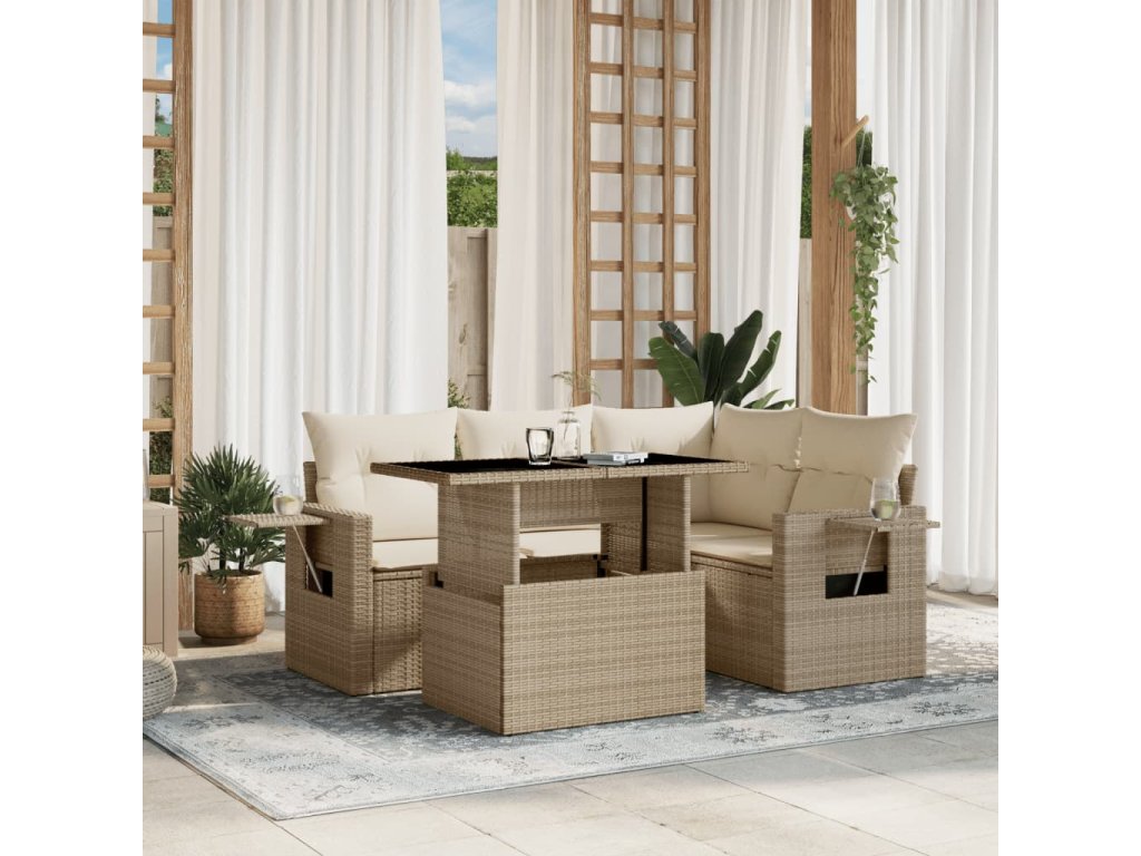 vidaXL 5-dielna záhradná súprava pohoviek s vankúšmi béžová polyratan