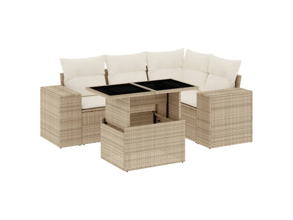 vidaXL 5-dielna záhradná súprava pohoviek s vankúšmi béžová polyratan