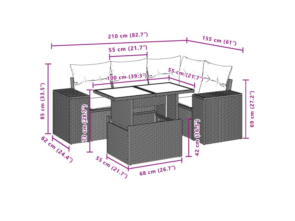 - Modulárny dizajn: Táto súprava vonkajšieho nábytku má modulárny dizajn, vďaka čomu je úplne flexibilná a ľahko sa premiestňuje, takže si svoj vonkajší nábytok budete môcť usporiadať podľa potreby.