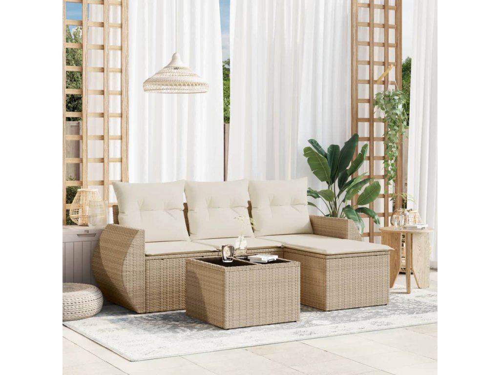 vidaXL 5-dielna záhradná súprava pohoviek s vankúšmi béžová polyratan