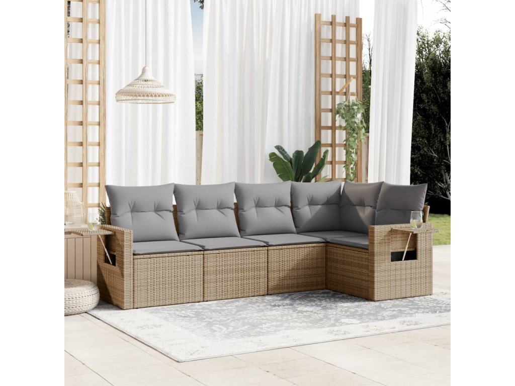 vidaXL 5-dielna záhradná súprava pohoviek s vankúšmi béžová polyratan