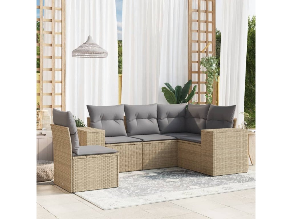 vidaXL 5-dielna záhradná súprava pohoviek s vankúšmi béžová polyratan
