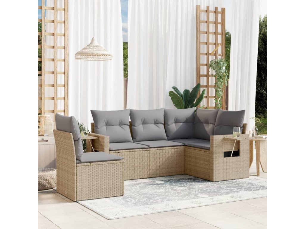 vidaXL 5-dielna záhradná súprava pohoviek s vankúšmi béžová polyratan