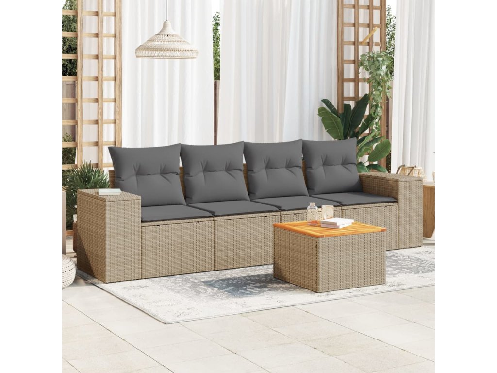vidaXL 5-dielna záhradná súprava pohoviek s vankúšmi béžová polyratan
