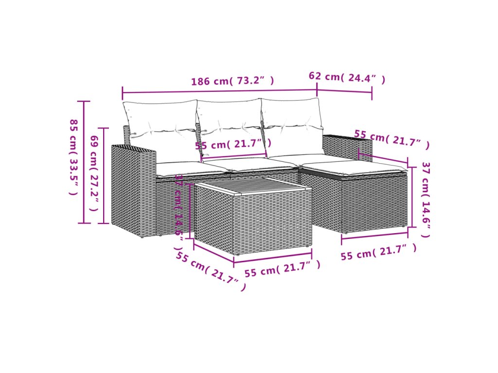 vidaXL 5-dielna záhradná súprava pohoviek s vankúšmi béžová polyratan