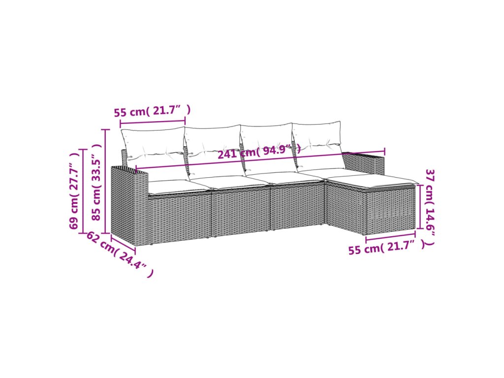 vidaXL 5-dielna záhradná súprava pohoviek s vankúšmi čierna polyratan