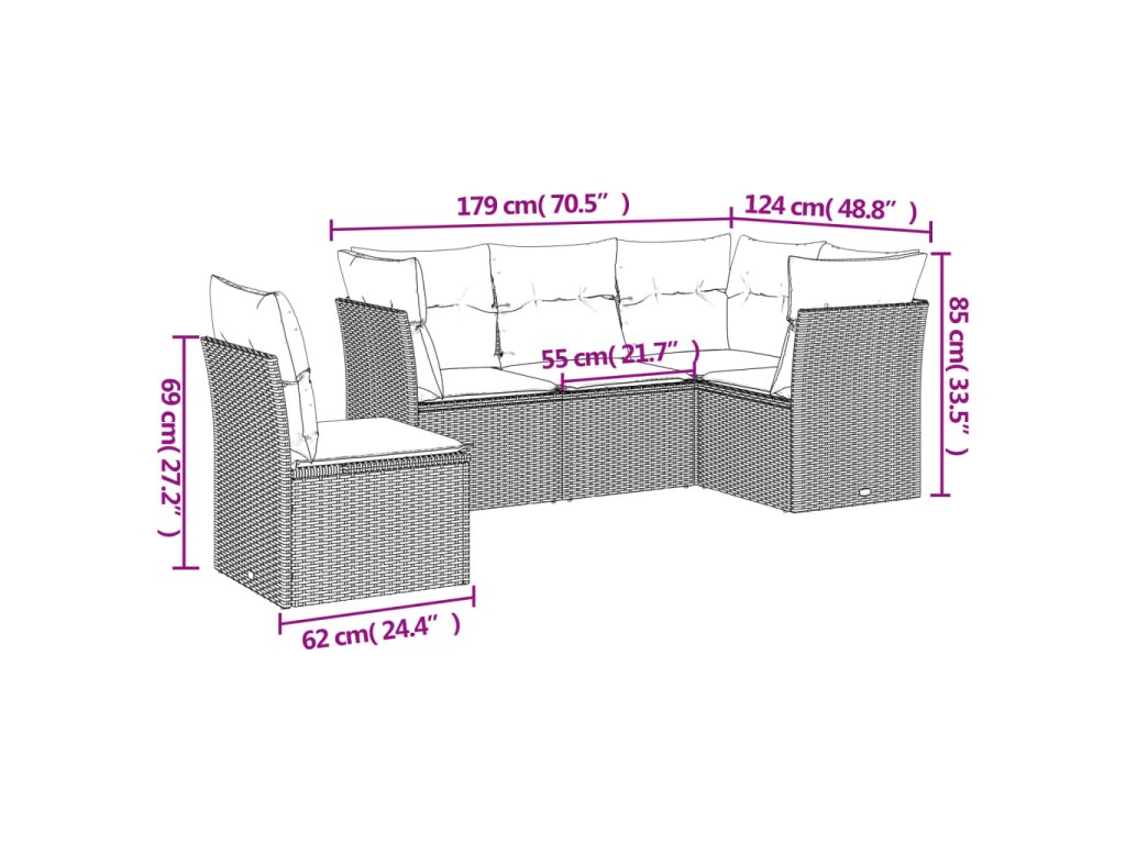 - Modulárny dizajn: Táto súprava vonkajšieho nábytku má modulárny dizajn, vďaka čomu je úplne flexibilná a ľahko sa premiestňuje, takže si môžete vytvoriť prispôsobené usporiadanie vonkajšieho nábytku.
