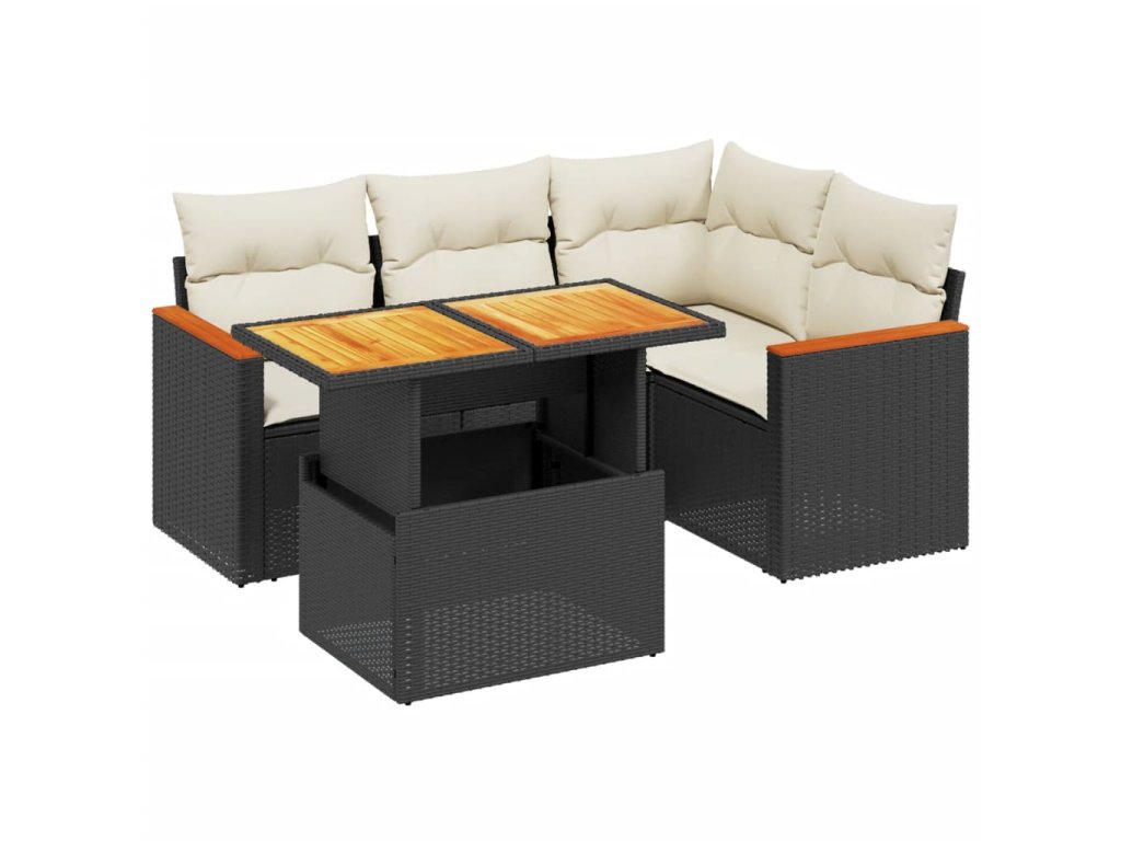 vidaXL 5-dielna záhradná súprava pohoviek s vankúšmi čierna polyratan