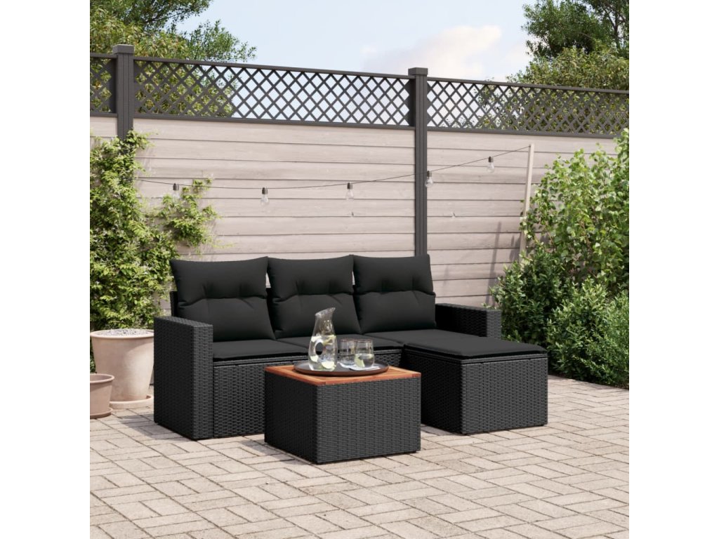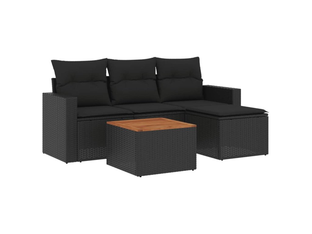 vidaXL 5-dielna záhradná súprava pohoviek s vankúšmi čierna polyratan