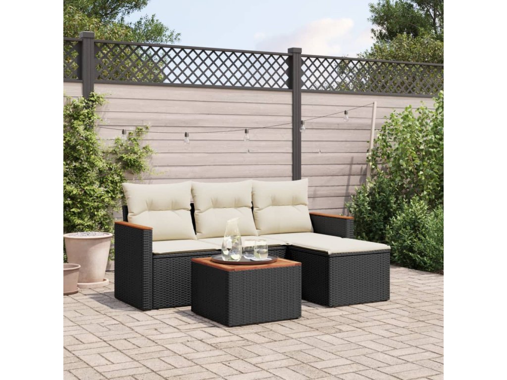vidaXL 5-dielna záhradná súprava pohoviek s vankúšmi čierna polyratan